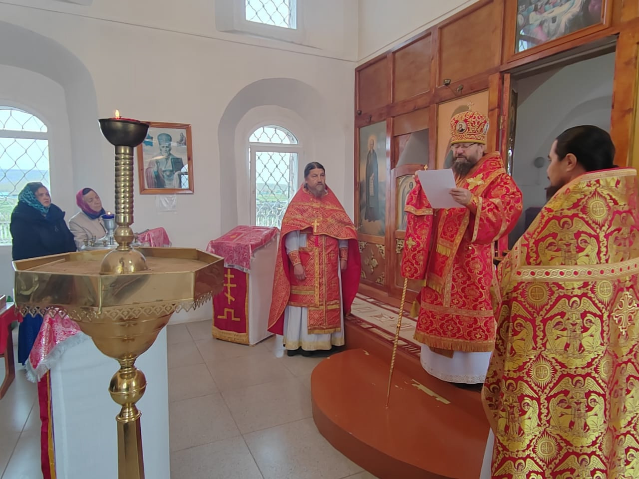Его Преосвященству сослужили: настоятель храма преподобного Амвросия Оптинского в посёлке Первомайский Шилкинского района иерей Лев Клюев; ключарь кафедрального собора Воскресения Христова г. Нерчинска иерей Роман Пичуев.