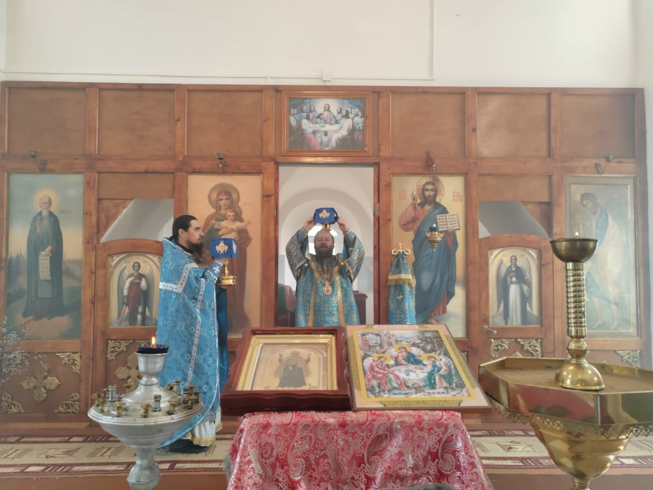 По окончании Литургии епископ Макарий обратился к прихожанам о иконе Божией Матери «Нерушимая стена», которая уже много веков является защитой и надеждой для верующих.